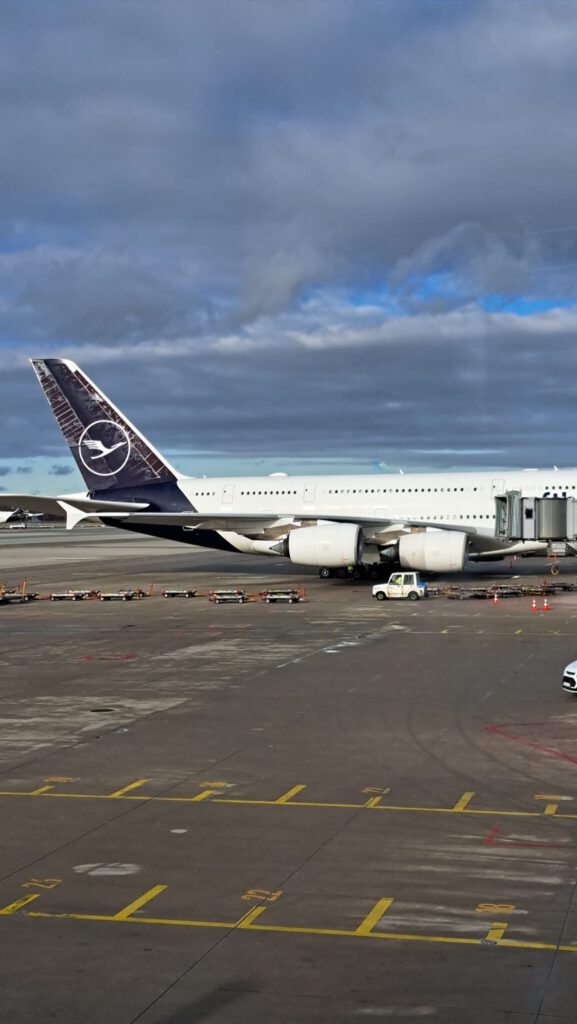 Prvi let preko Atlantika bio je nevjerojatan. Letjeli smo s Lufthansom, a dugi sati u zraku brzo su prošli uz filmove, obroke i pogled kroz prozor koji stalno podsjeća koliko je svijet ogroman. Hrana i piće bili su raznovrsni i odlični – od goveđeg gulaša i kolača do vina i raznih snackova. Dobili smo dekicu i jastuk, a pred kraj leta i vlažne ručnike za osvježenje.